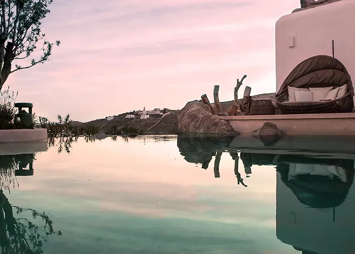 Kove Mykonos - A Myconian Collection Hotel Ornos met 35 kamers ligt binnen 20 minuten loopafstand van Ornos en verwelkomt gasten met een kapsalon en een restaurant. Tijdens uw verblijf in dit hotel in Ornos wordt u uitgenodigd om het Maritiem Museum van Mykonos in de buurt te ontdekken. Op 2 km verderop kunt u het Klein Venetië bereiken.